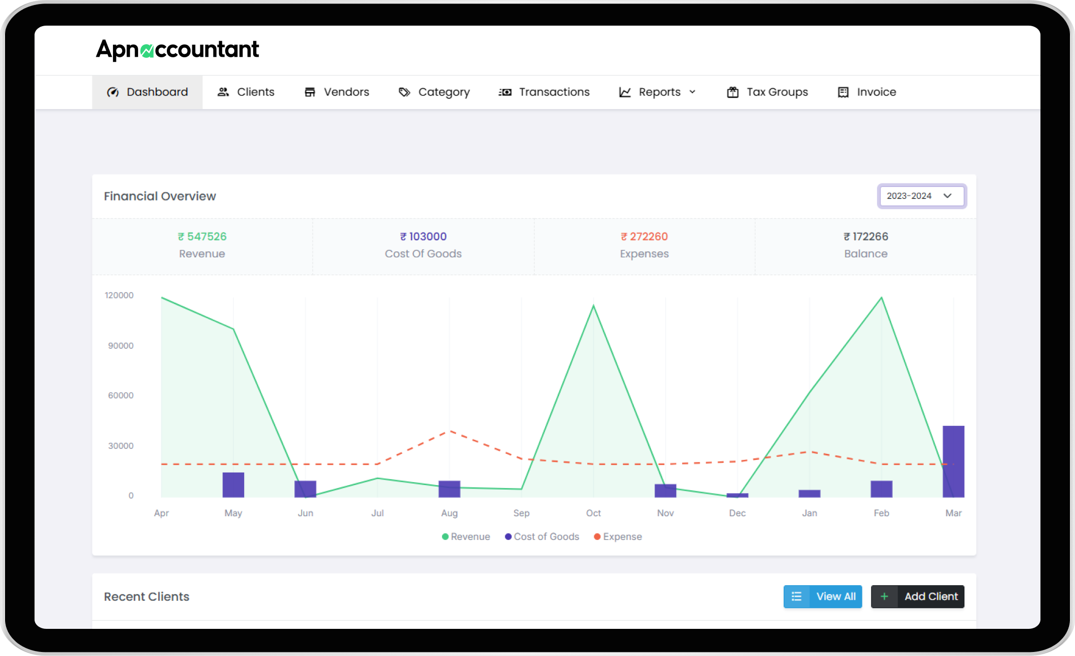 Client and vendor management is streamlined; Apnaccountant is a game-changer for us.